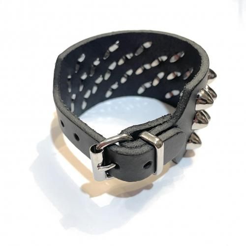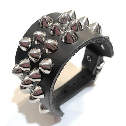 UK産 リアルレザー 山低コニカルスタッズ付きリストバンド